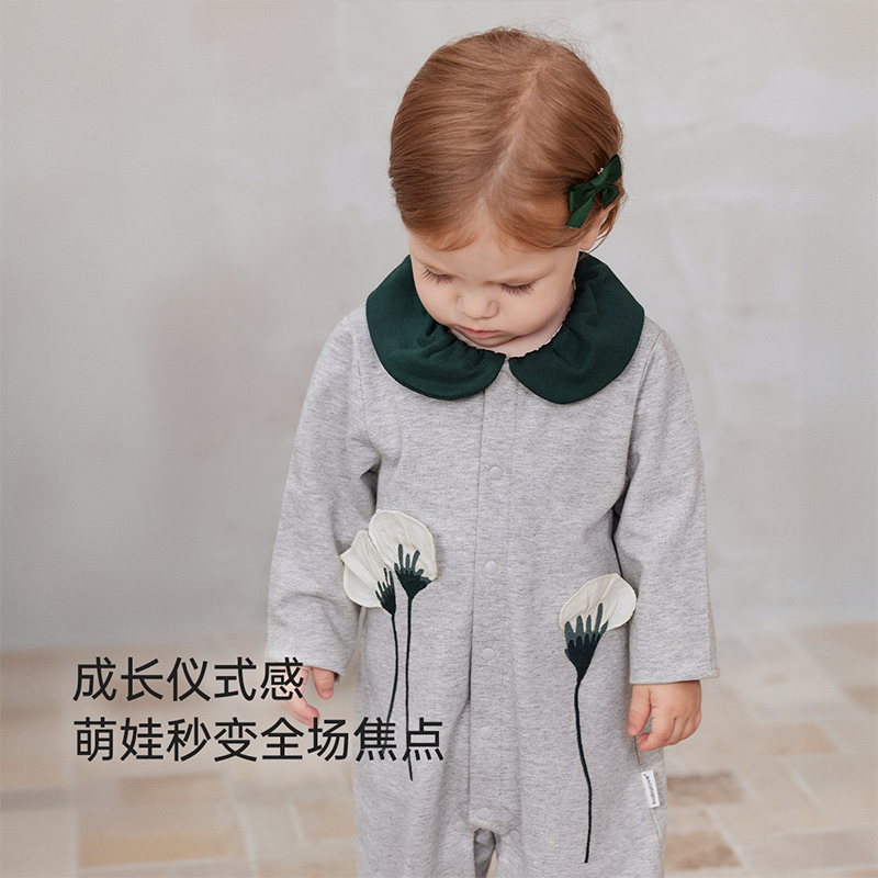 babycare秋新款山茶花连体衣宝宝包屁衣新生儿爬服外出服婴儿衣服