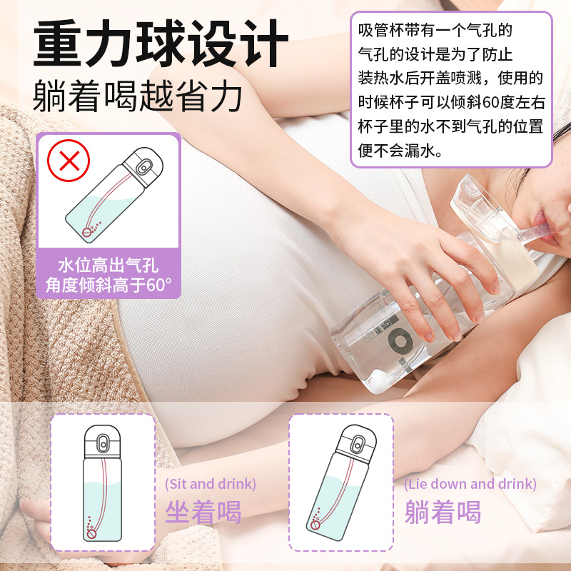 吸管杯孕妇产妇专用水杯成人带吸管杯子躺着喝水耐高温重力球刻度