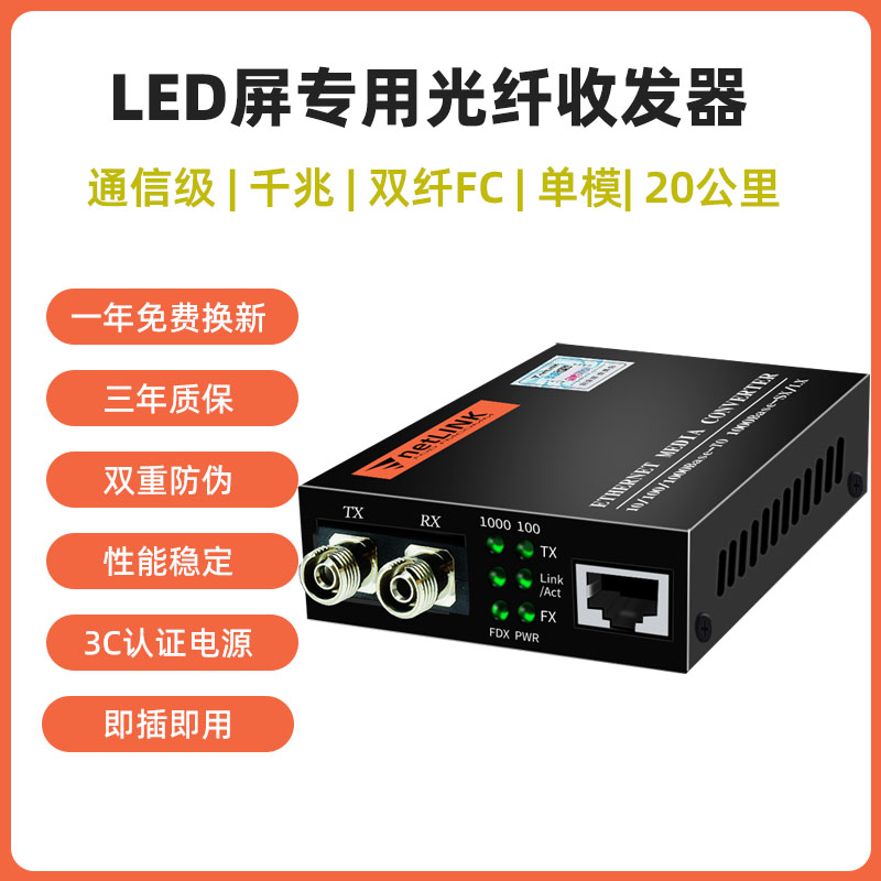 LED大屏专用光纤收发器兼容灵星雨卡莱特诺瓦中航等主流纯千兆单模双纤单纤SC/LC/FC口全彩显示屏光电转换器