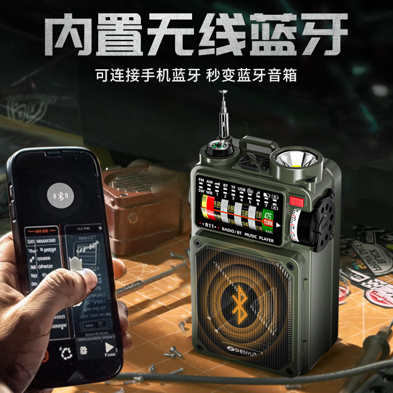 太阳能手摇发电收音机应急手电筒强光超亮多功能救援野外生存装备