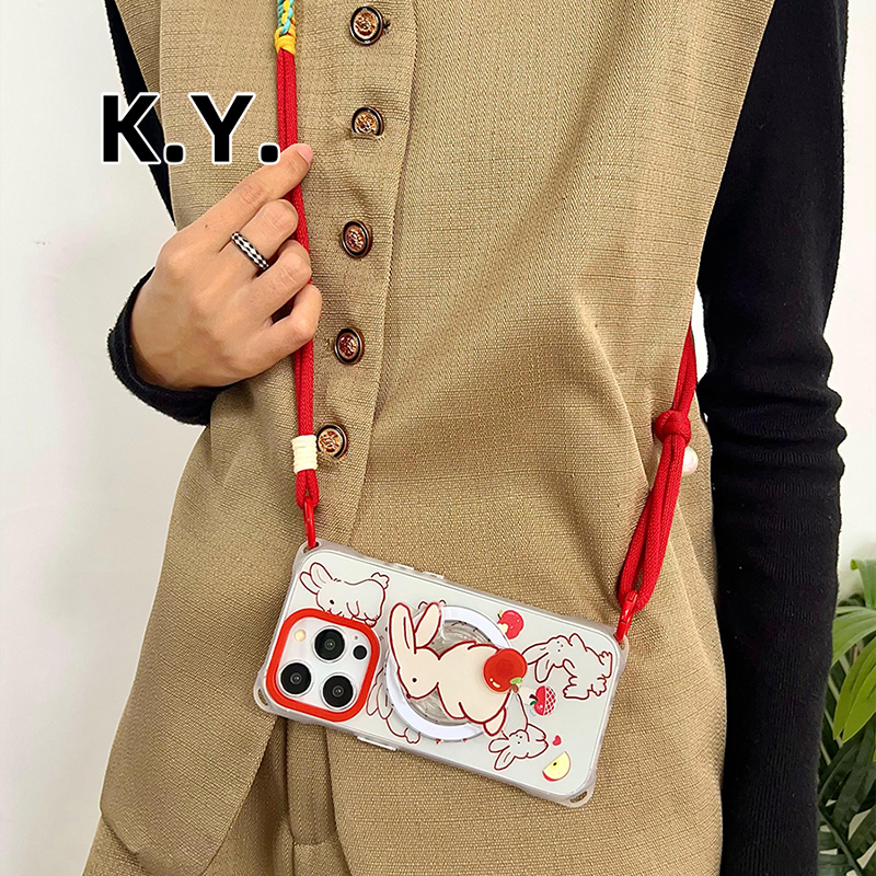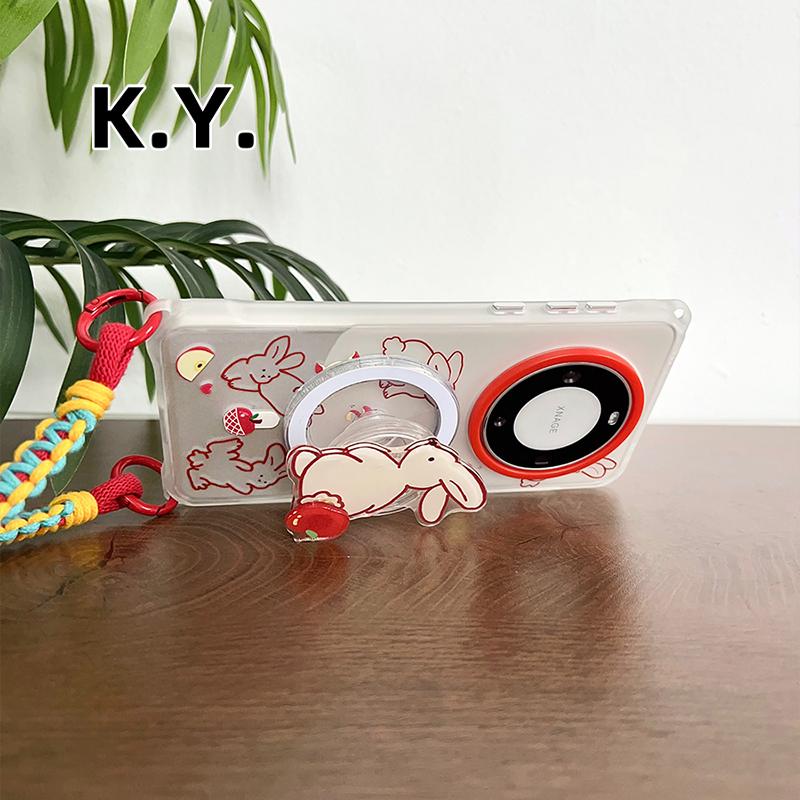 新款可爱小兔子磁吸支架手机壳适用于iPhone16promax华为mate70pro四角开孔防摔Pura70pro手提斜挎14ultra