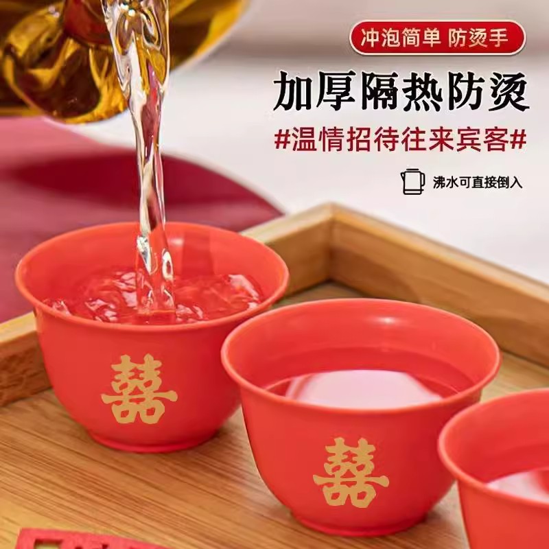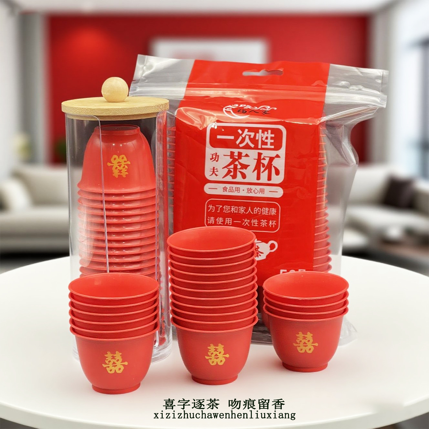 一次性稻壳加厚功夫茶杯具红色防烫品茗敬茶杯结婚品茶饮酒婚礼用