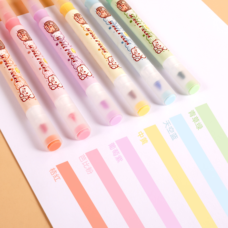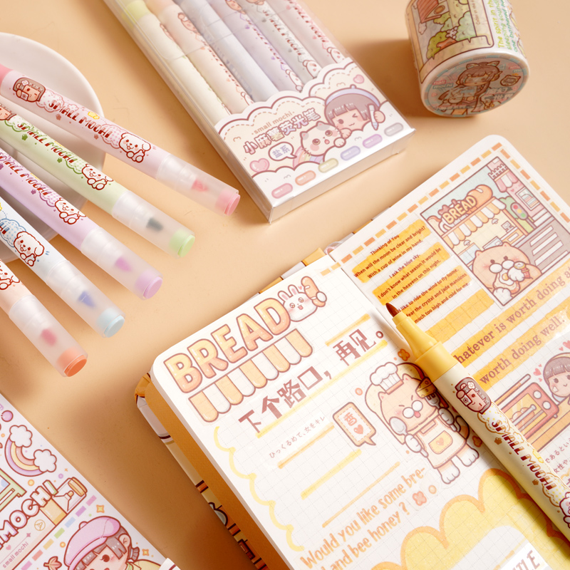 小麻薯荧光标记笔学生用记号笔彩色划重点高颜值手帐专用笔可爱少女心手账笔工具双头大容量高颜值荧光色笔