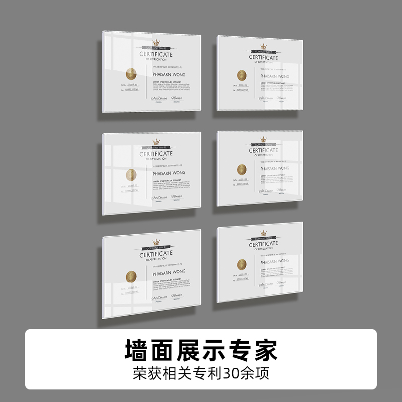 亚克力悬浮相框专利证书展示框教师简介奖状荣誉挂墙照片墙展示墙