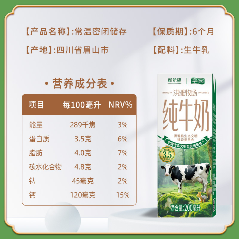 新希望华西洪雅牧场200ml*10盒3.5g蛋白原生高钙营养儿童早餐