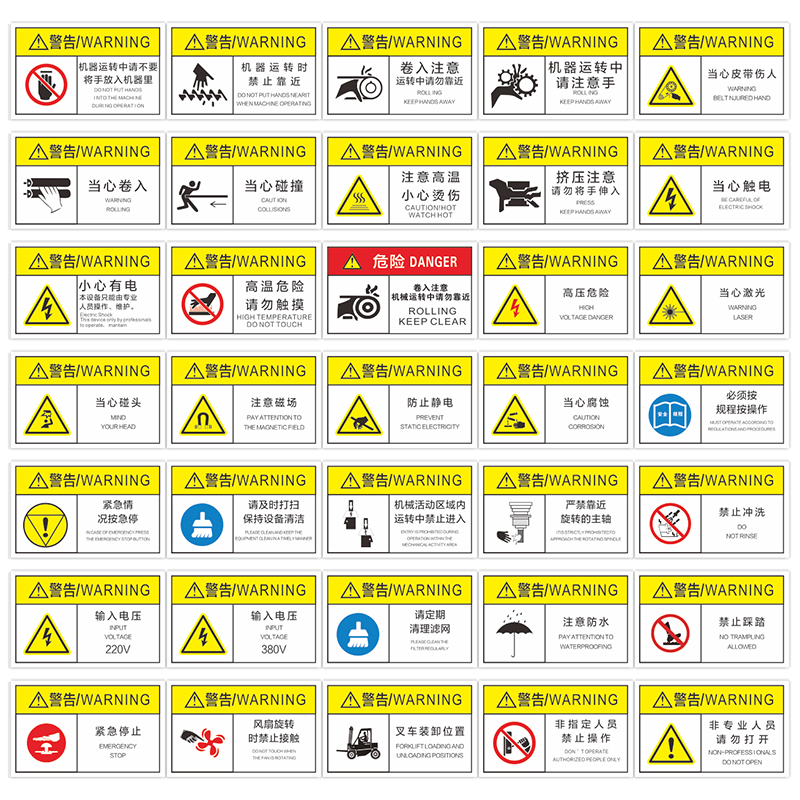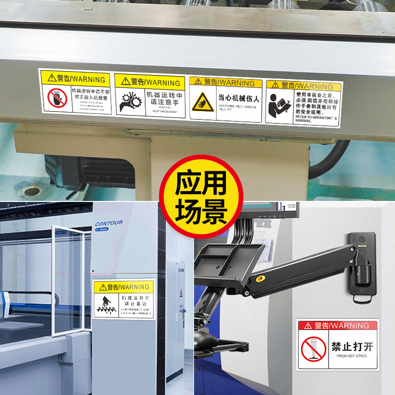 PVC机器标签机械设备安全警示贴当心触电有电危险当心伤手请勿触摸贴纸不干胶机床安全操作标识标签牌3M定制