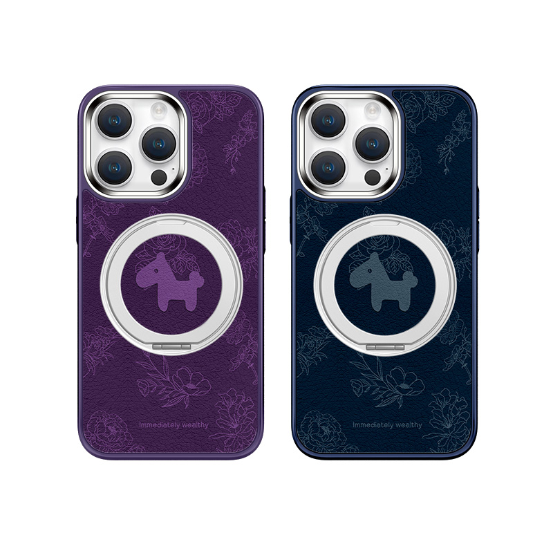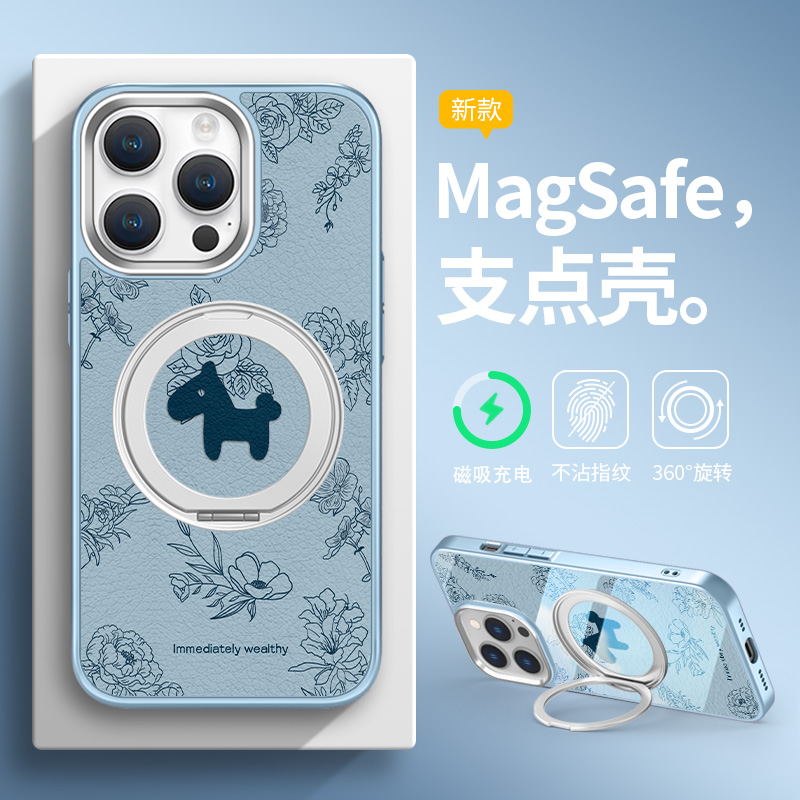 适用苹果16promax马上有钱手机壳磁吸带支架iPhone15支点壳14plus马年发财13pro指环12高端皮纹11pro保护套