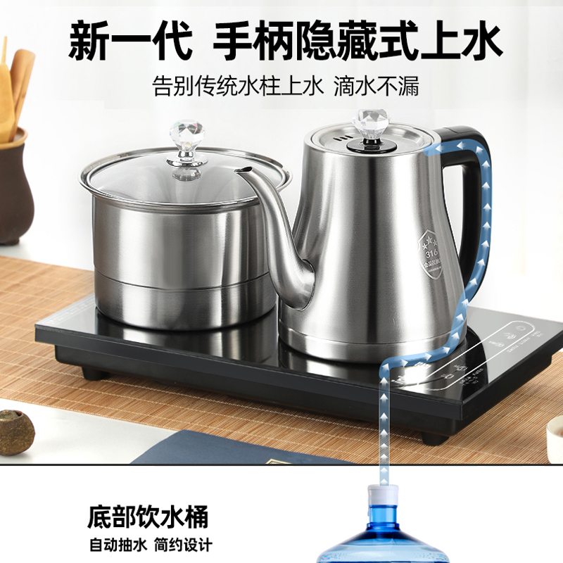 全自动底部上水316不锈钢烧水壶泡茶台茶桌一体专用嵌入式煮茶器