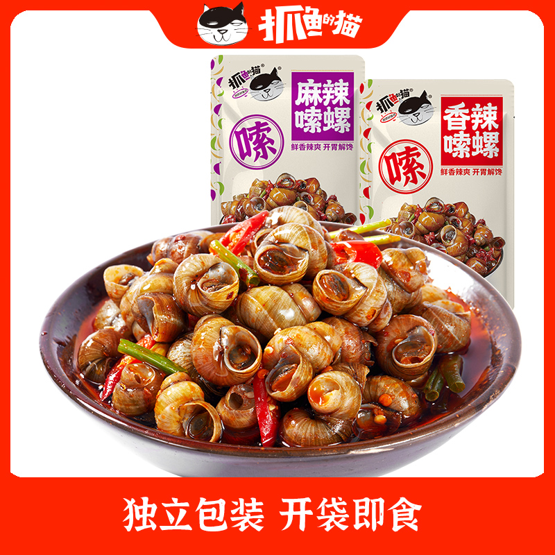 【买25送25】抓鱼的猫香辣爆汁嗦螺夜宵零食开袋即食田螺下酒菜