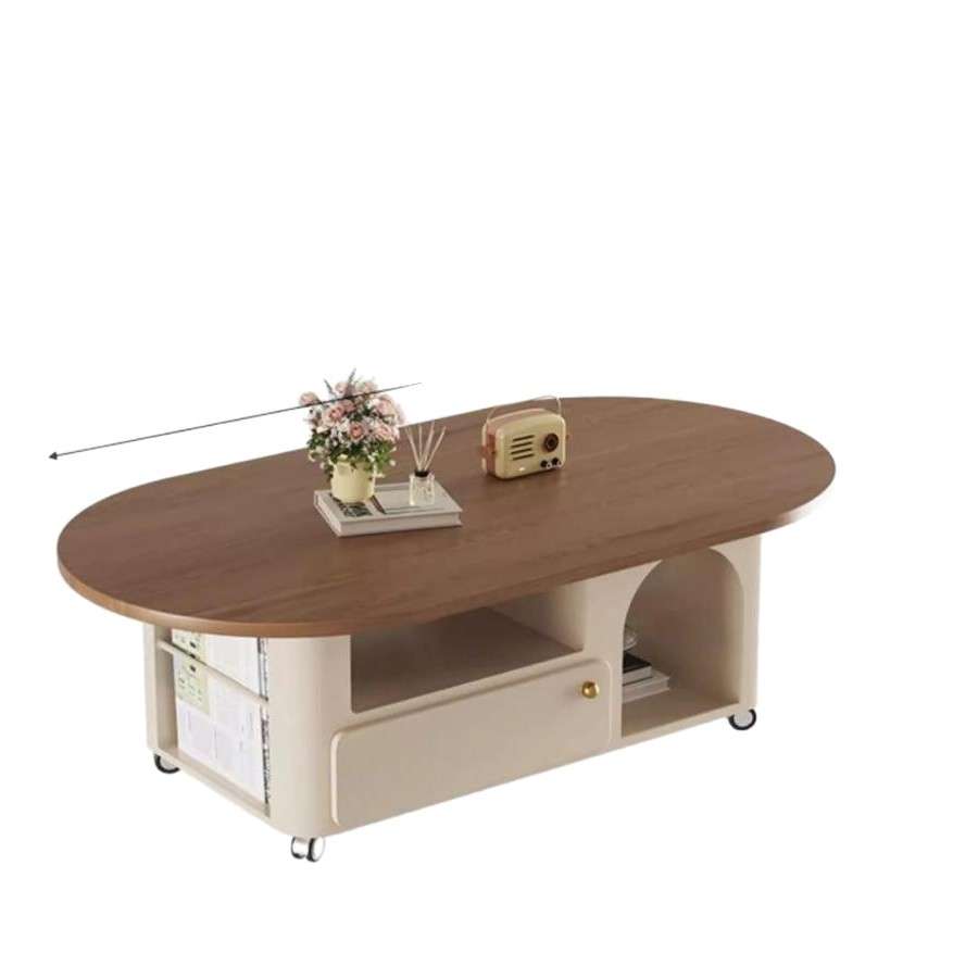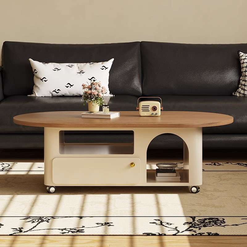 实木中古风茶几极简意式客厅家用设计师小户型高级椭圆形茶桌带轮