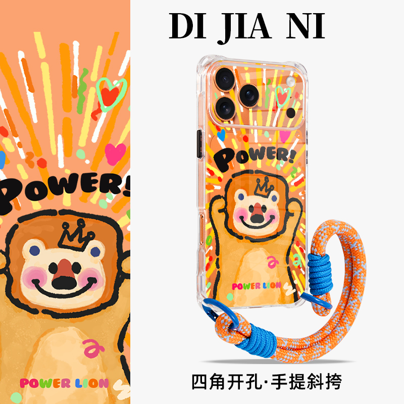 力量狮子适用苹果16pro手机壳斜挎可背iphone17promax挂绳新款14手腕女款15pm可爱创意13防摔背带12网红爆款