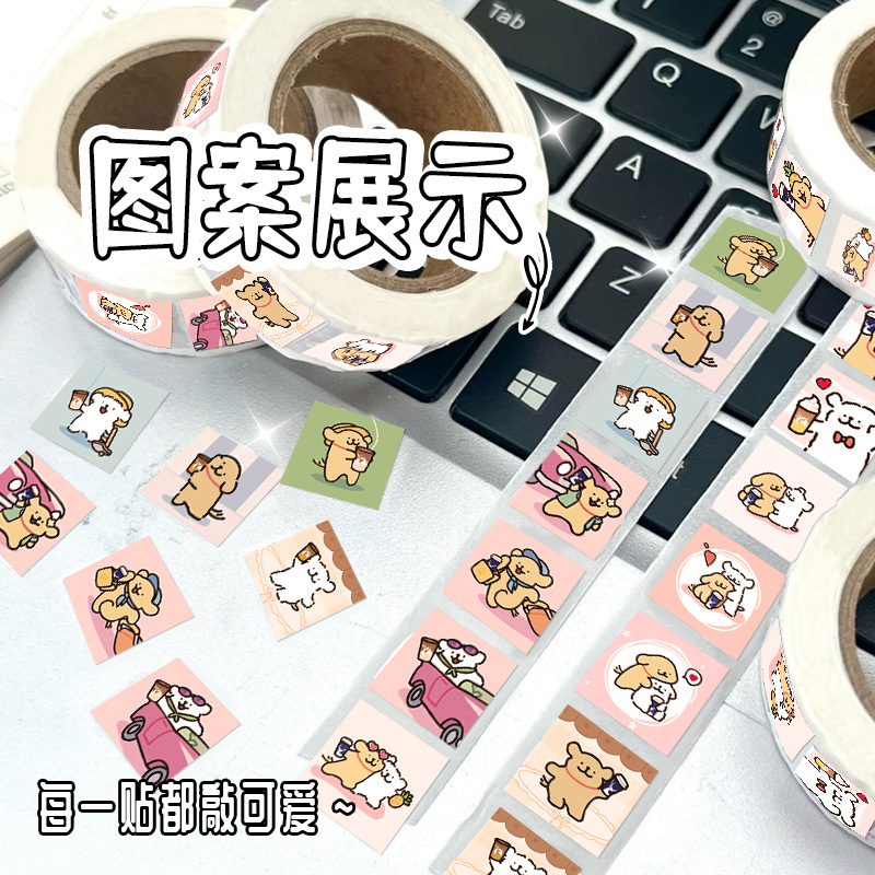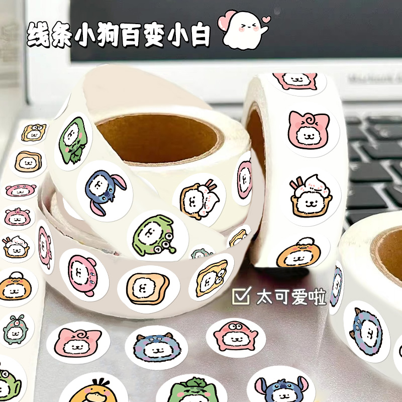 线条小狗卷卷贴纸合集可爱卡通马尔济斯周边手机壳手账行李箱装饰贴画
