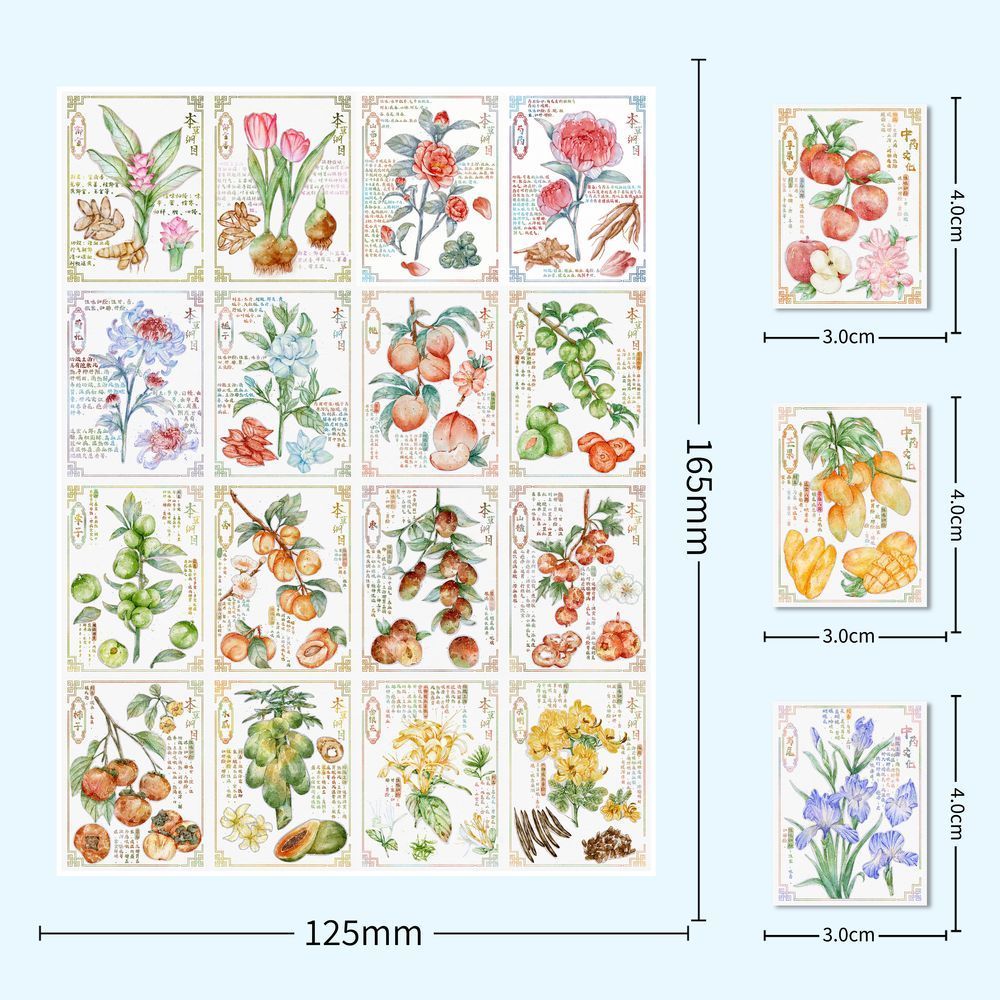 126张本草纲目中医文化高颜值精美贴纸画DIY装饰手机壳手账本桌面