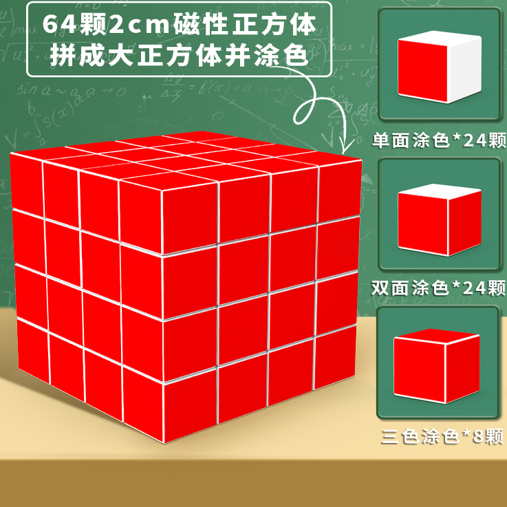 表面涂色的磁性正方体27个小方块磁吸式立方体2cm六面磁性正方体从不同方向观察物体表面涂色正方体