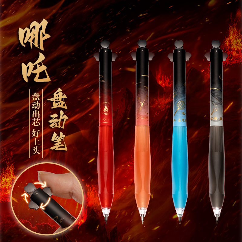 三年二班 哪吒中性笔学生用刷题笔哪咤盘动出芯黑色笔CS双珠高颜值考试专用书写笔0.5速干顺滑炫酷男孩女孩