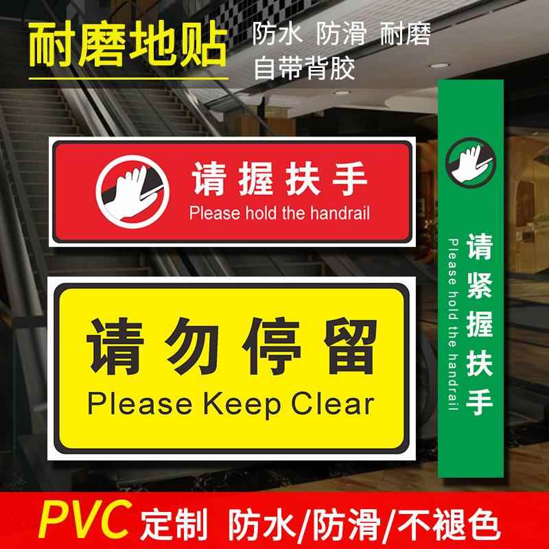 商场自动扶梯把手提示标识贴上下爬梯请紧握扶手站稳扶好不要看手机请勿停留提示贴纸超市电梯安全急停标识