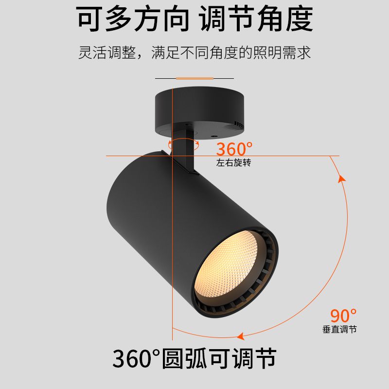 明装免开孔COB射灯家用店铺商用可调角度超亮聚光吸顶筒灯天花灯
