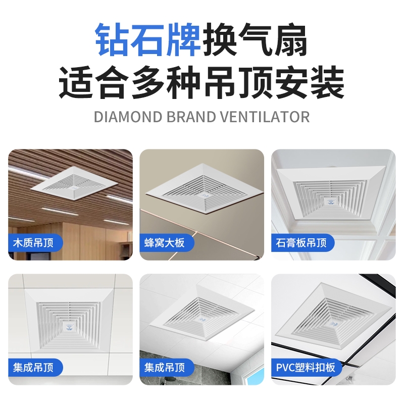 钻石牌集成吊顶排气扇卫生间厨房强力换气通风超静音天花风扇