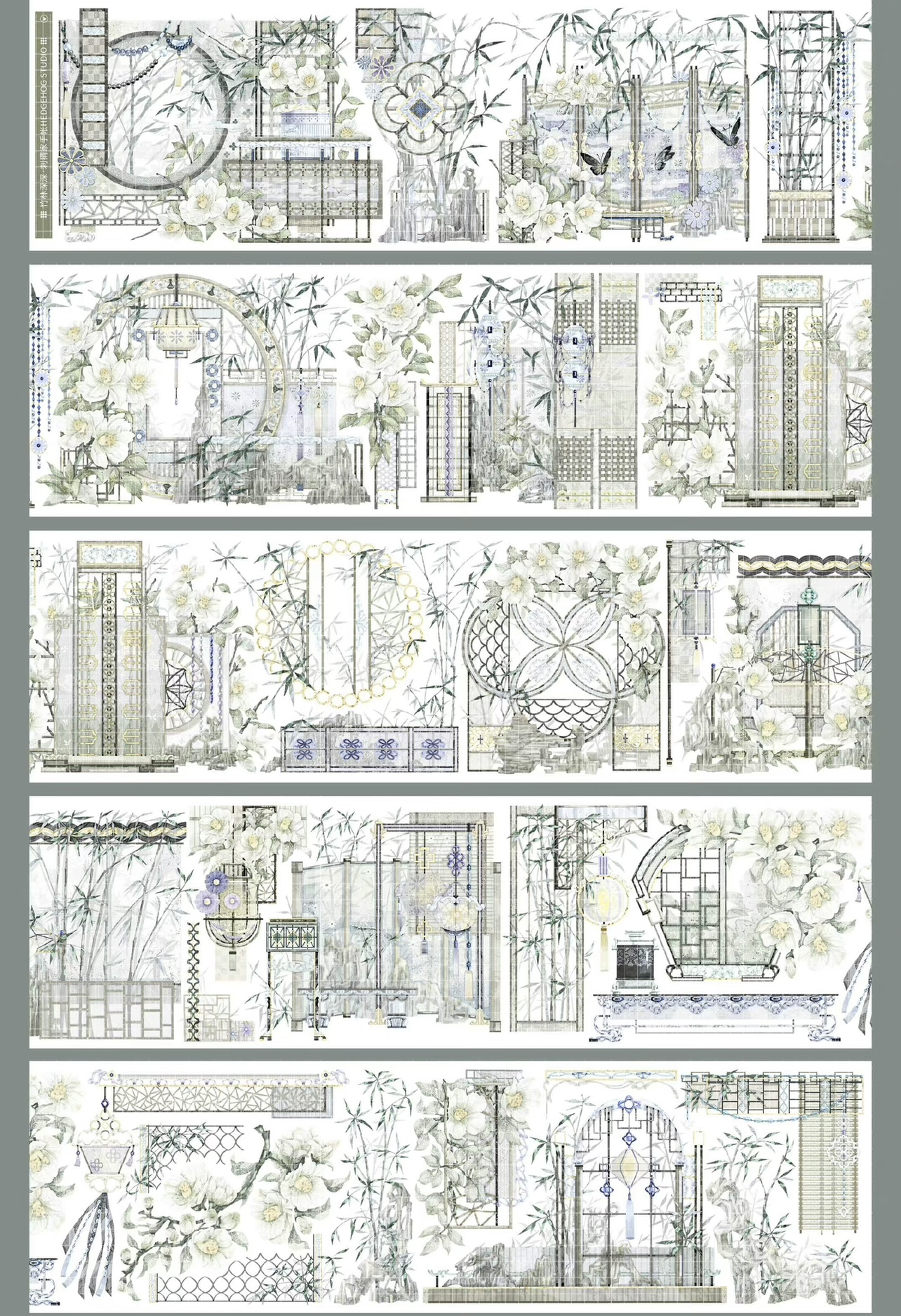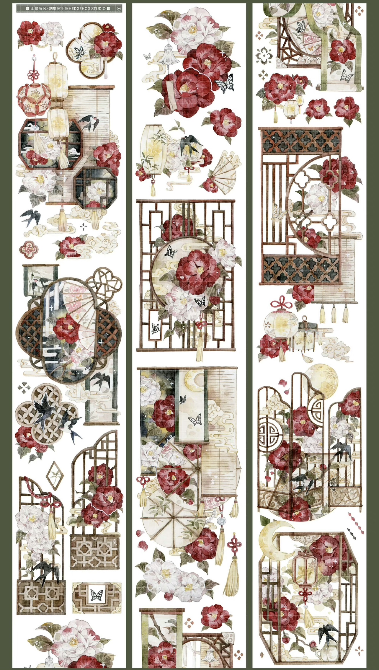 刺猬家分装手账胶带 寒阑灯姗山茶屏风竹林深深叶芳花灯古风素材