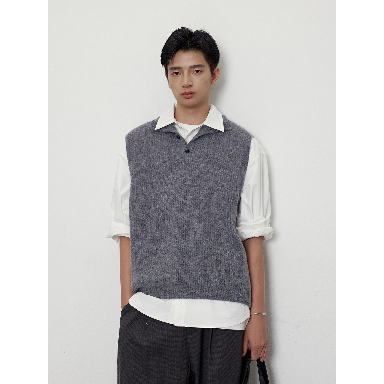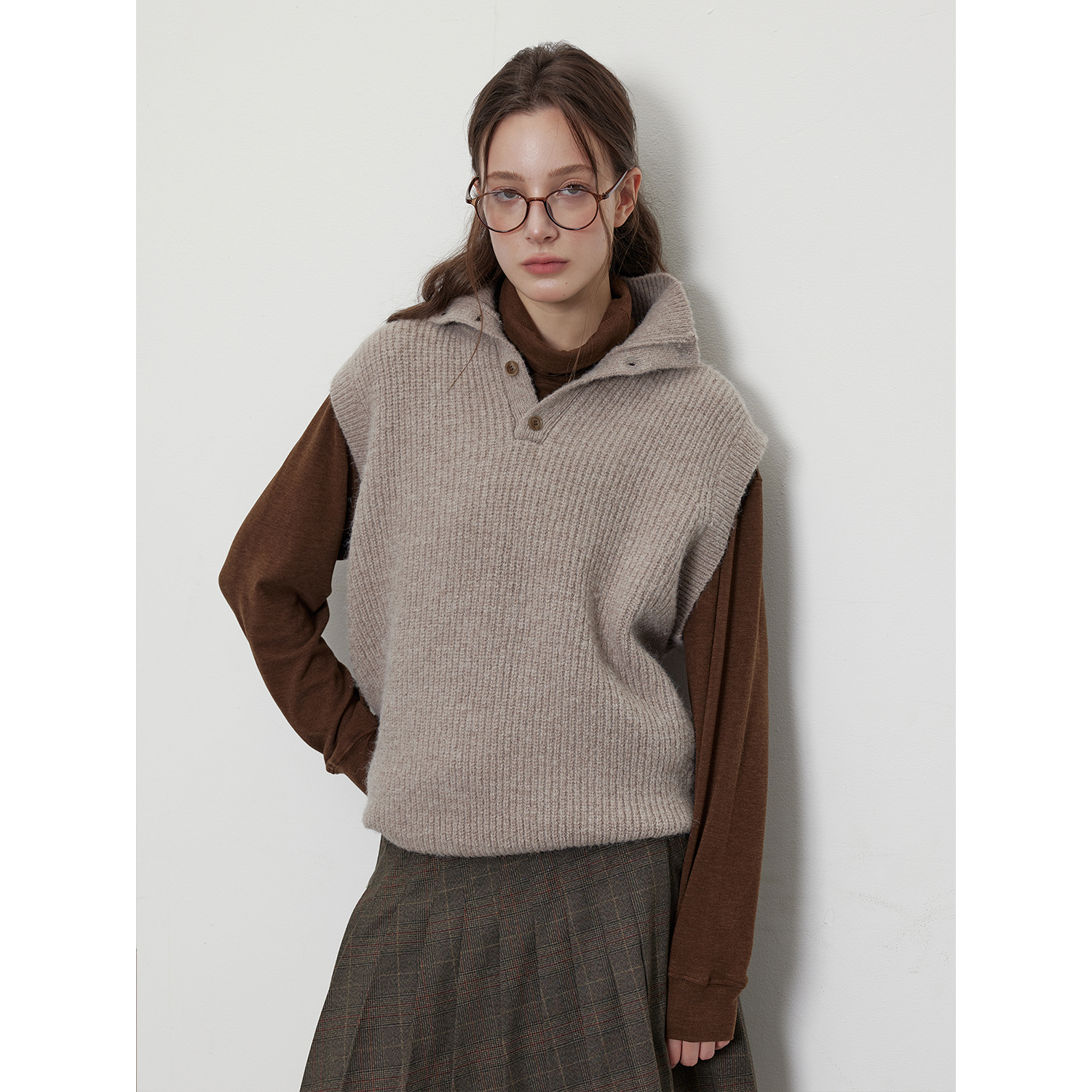 LR MADE 25AW 轻盈保暖羊驼毛感 彩纱针织立翻领半开衫马甲背心