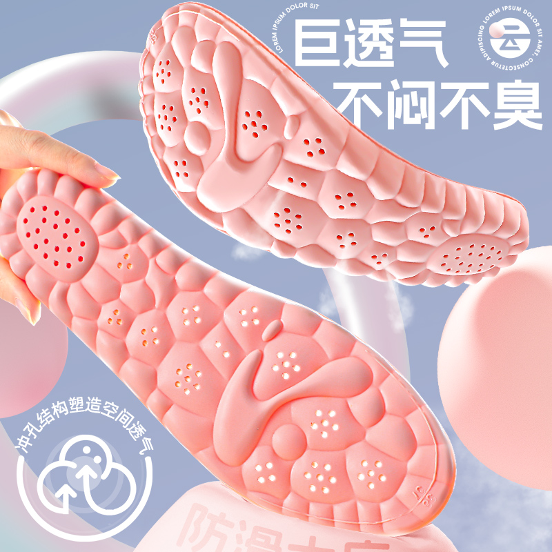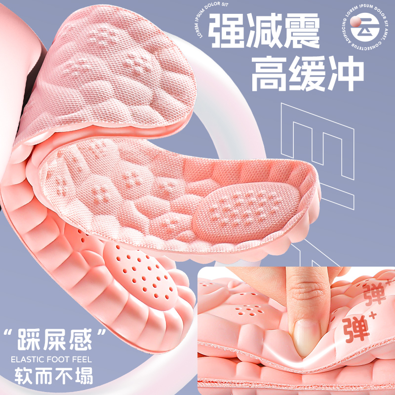 踩屎感鞋垫久站不累软底夏季足弓支撑运动气垫减震吸汗防臭男女款
