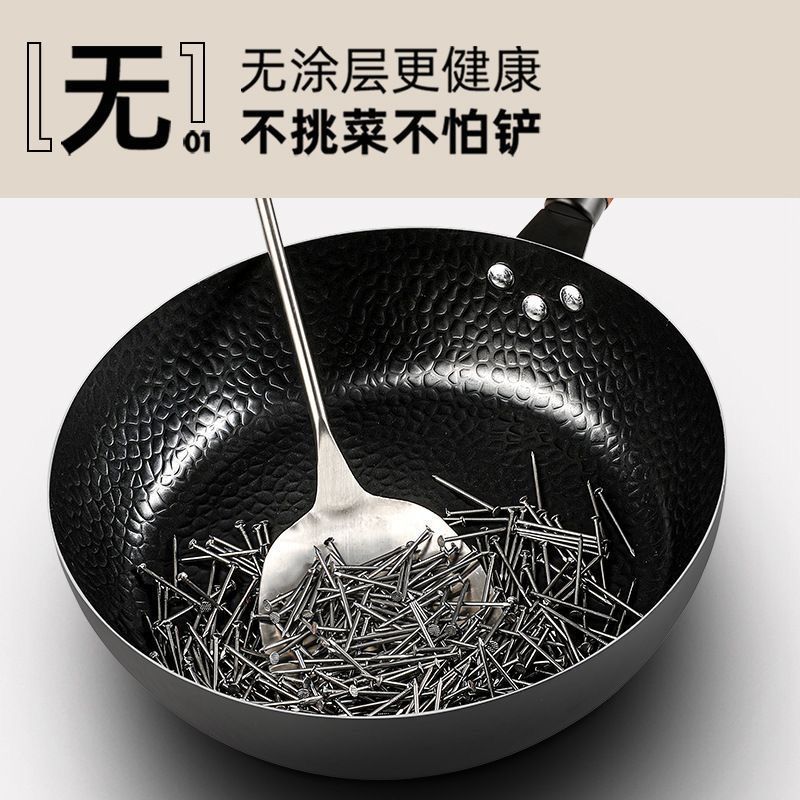康巴赫款章丘厨房平底铁锅炒锅老式煎锅平底锅家用不粘锅涂层电磁