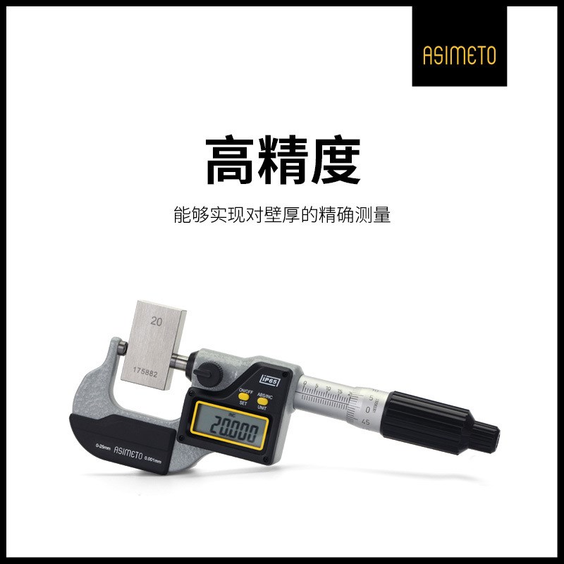 安度数显壁厚千分尺外径管壁0.001mm高精度圆球头型厚测量仪