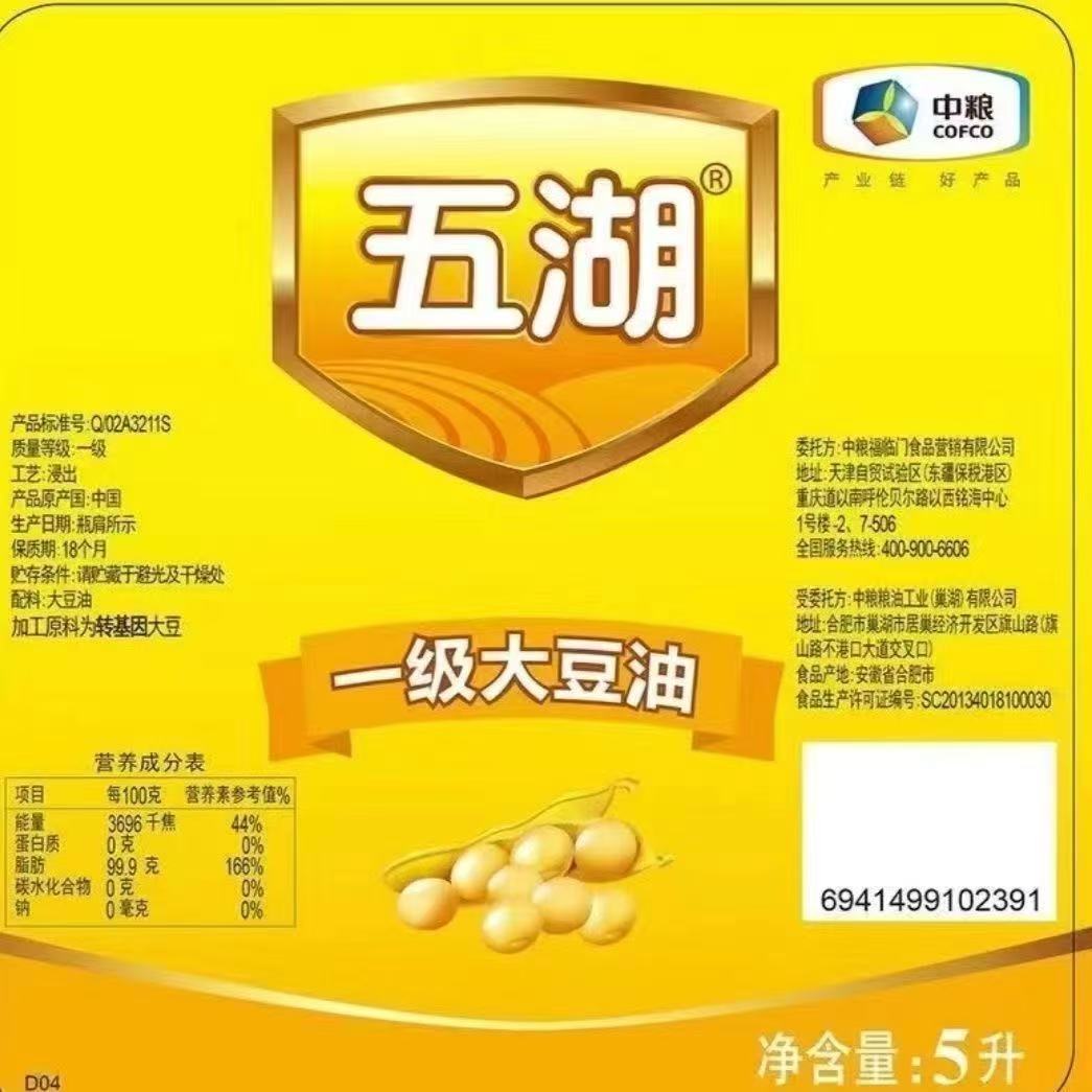 一级五湖大豆油5L*1桶炒菜食用油正宗火锅