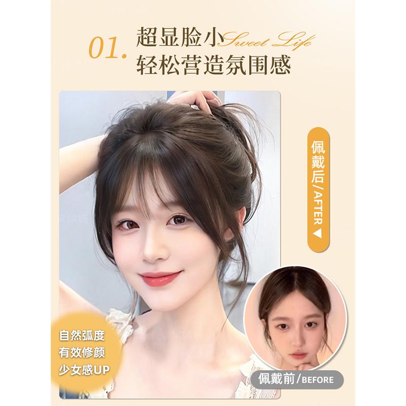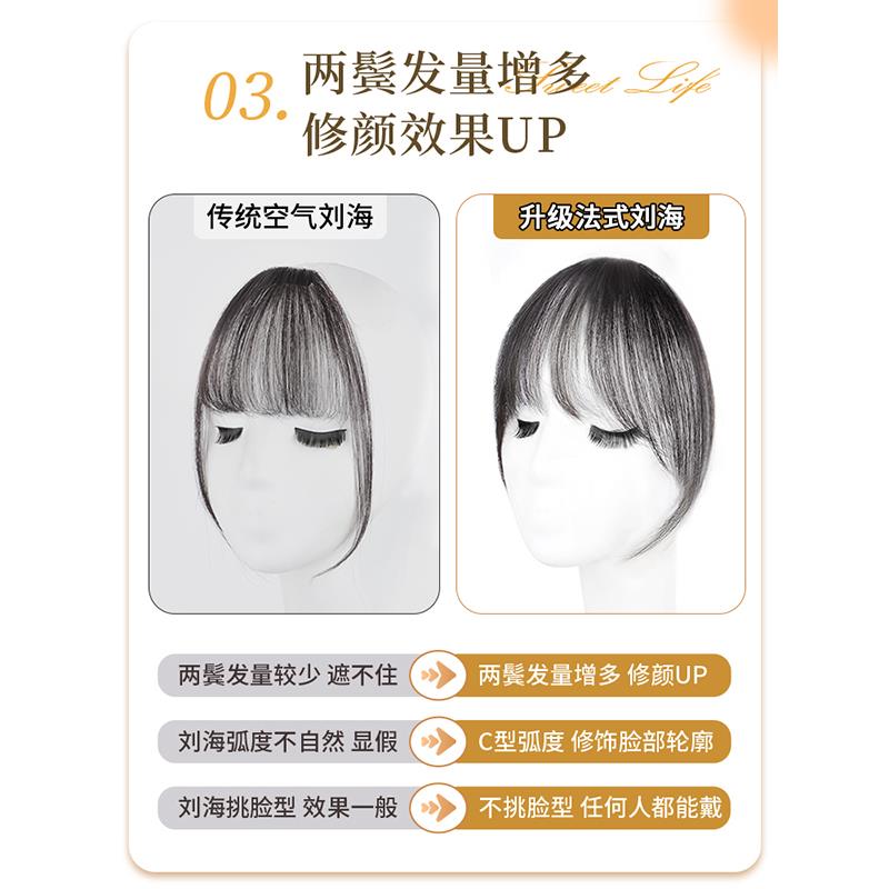 法式假发女空气刘海修颜显瘦全真发自然前额隐形无痕轻薄蓬松