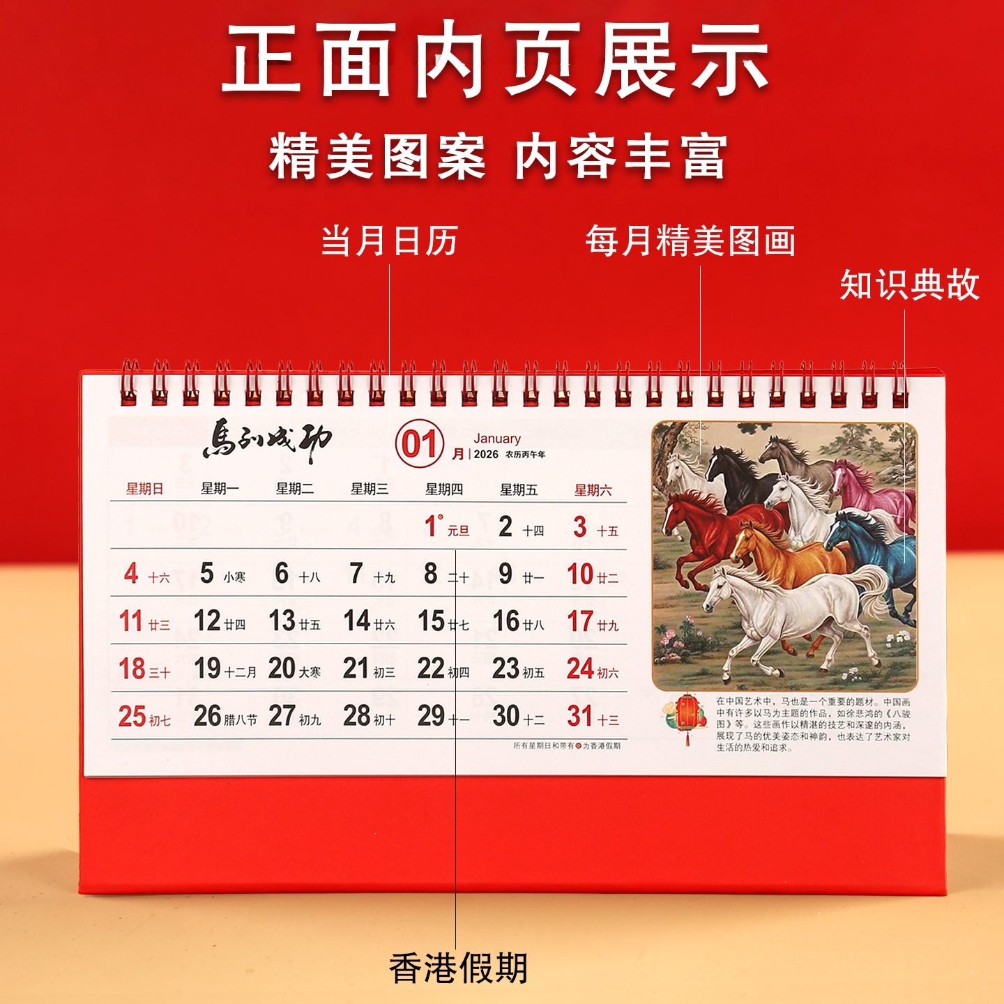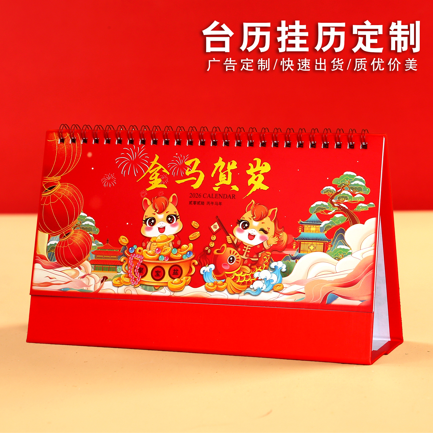2026年马年台历定制商务办公大号新年日历个性创意中国风加厚企业礼品广告台历定做简约记事大格子计划本日历