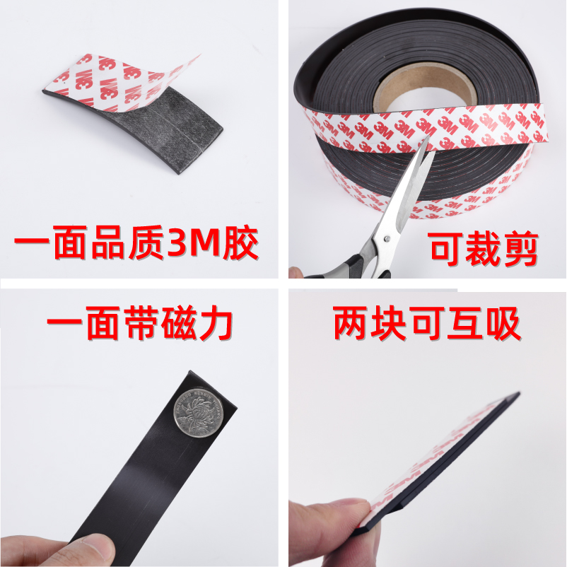 麦遇强力磁条贴条形长条防蚊门帘磁条3M背胶自粘板书磁贴公开课堂老师教学教具对吸强磁吸铁石黑板磁性软磁条