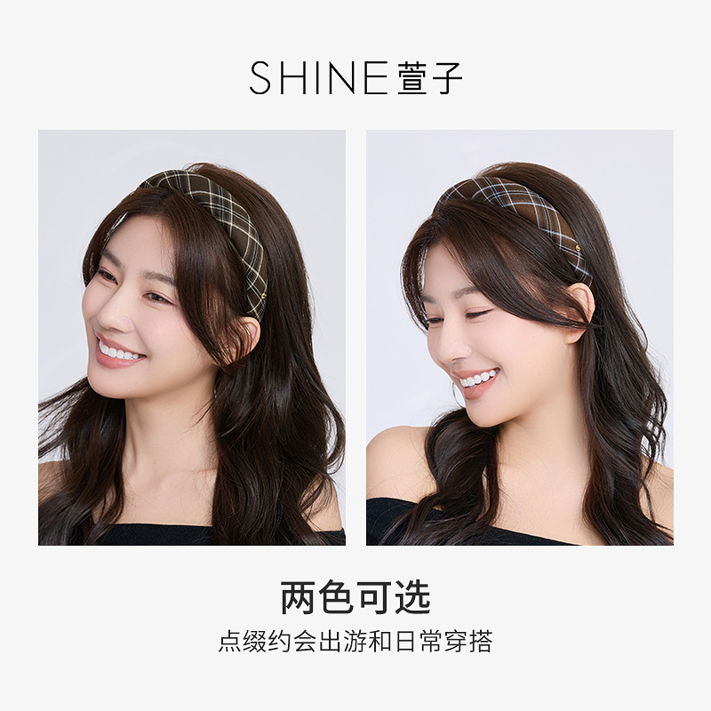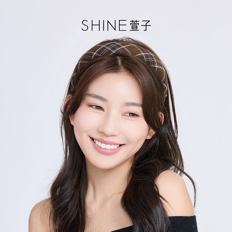 SHINE萱子饰品可可蓝雾系列优雅复古格纹发箍咖棕色学院风发卡