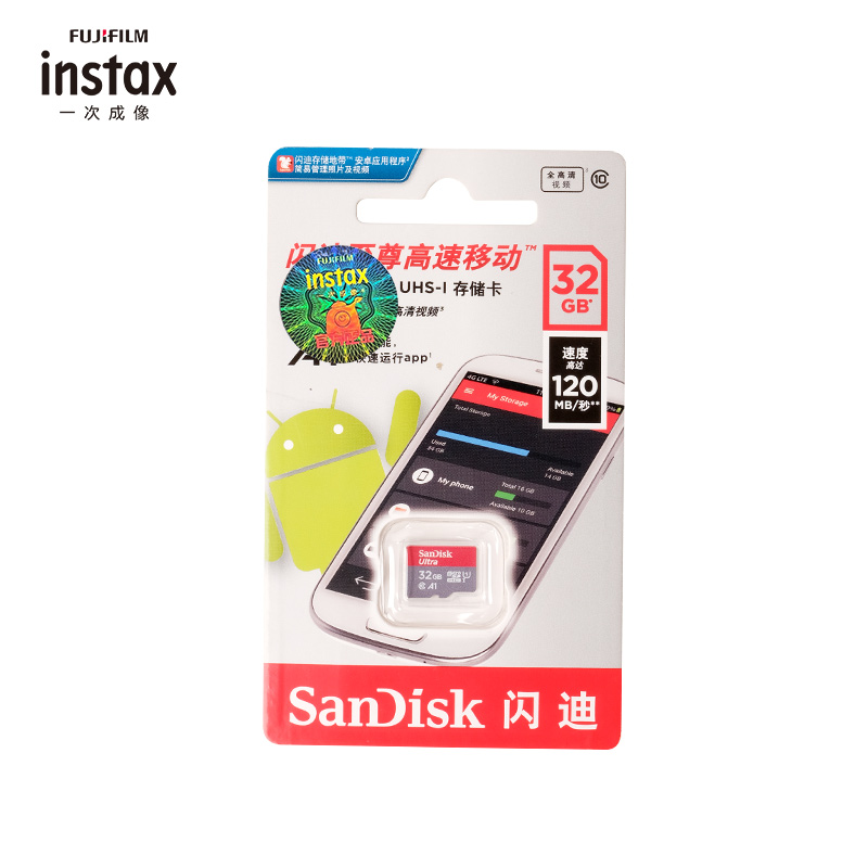 富士一次成像TF卡读卡器套装闪迪32GB高速内存卡SD/TF二合一家用摄像头行车记录仪沣标读卡器原装多功能