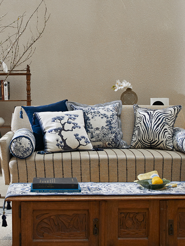 蜡笔派「中古青花系列」倾花辞法式抱枕中式客厅高级感沙发靠枕