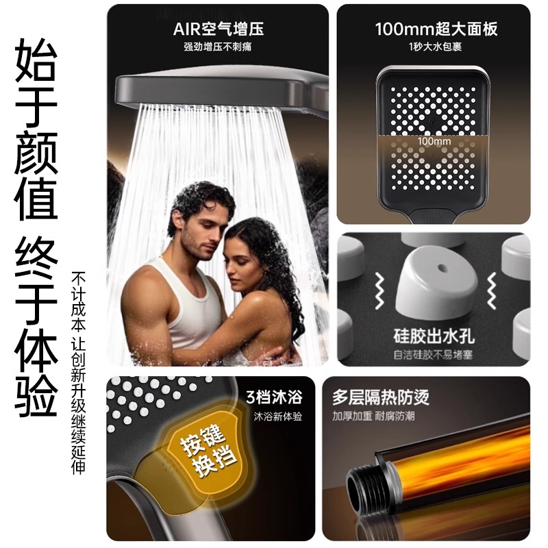 德系增压花洒喷头超强加压大出水量浴室浴霸淋浴头淋雨莲蓬头套装