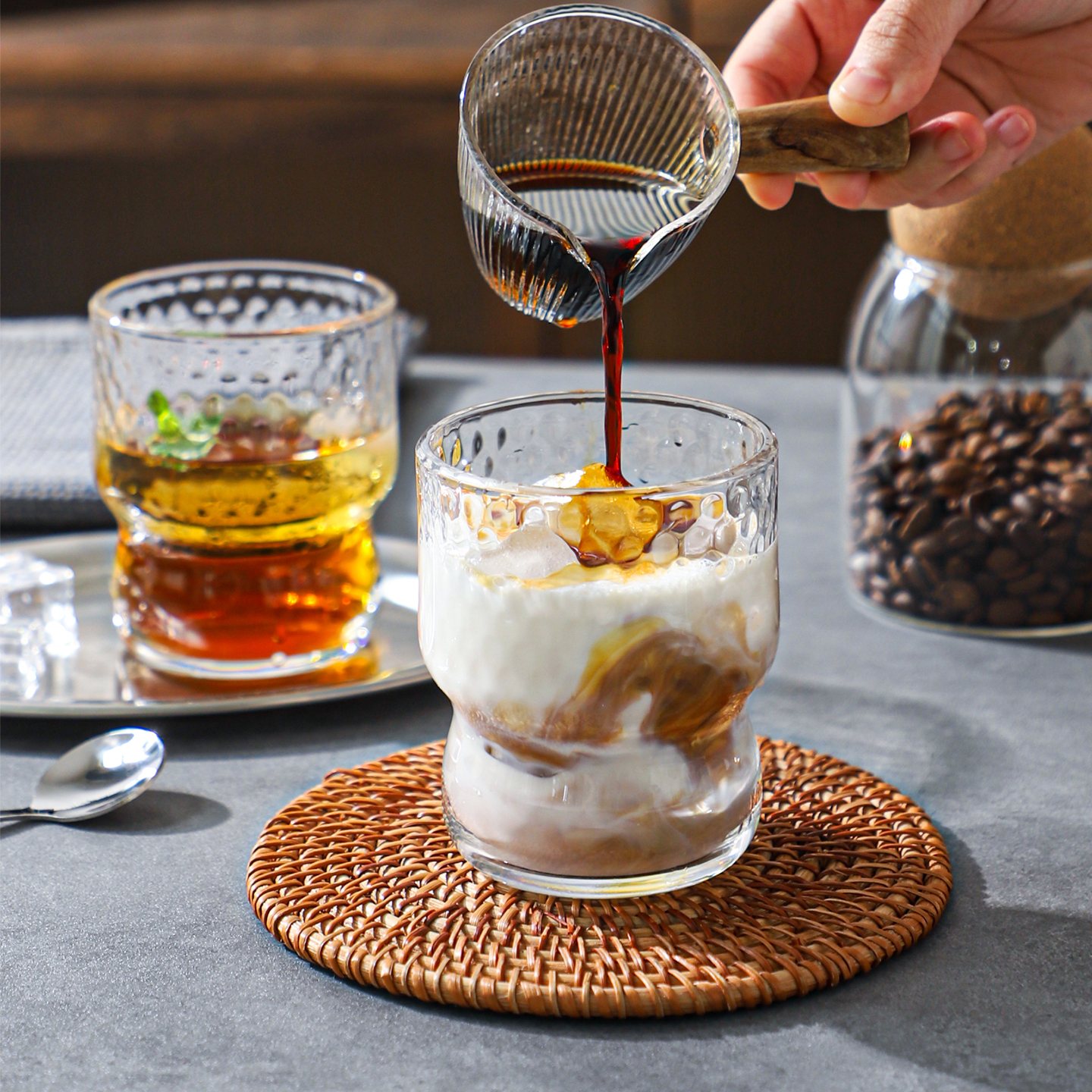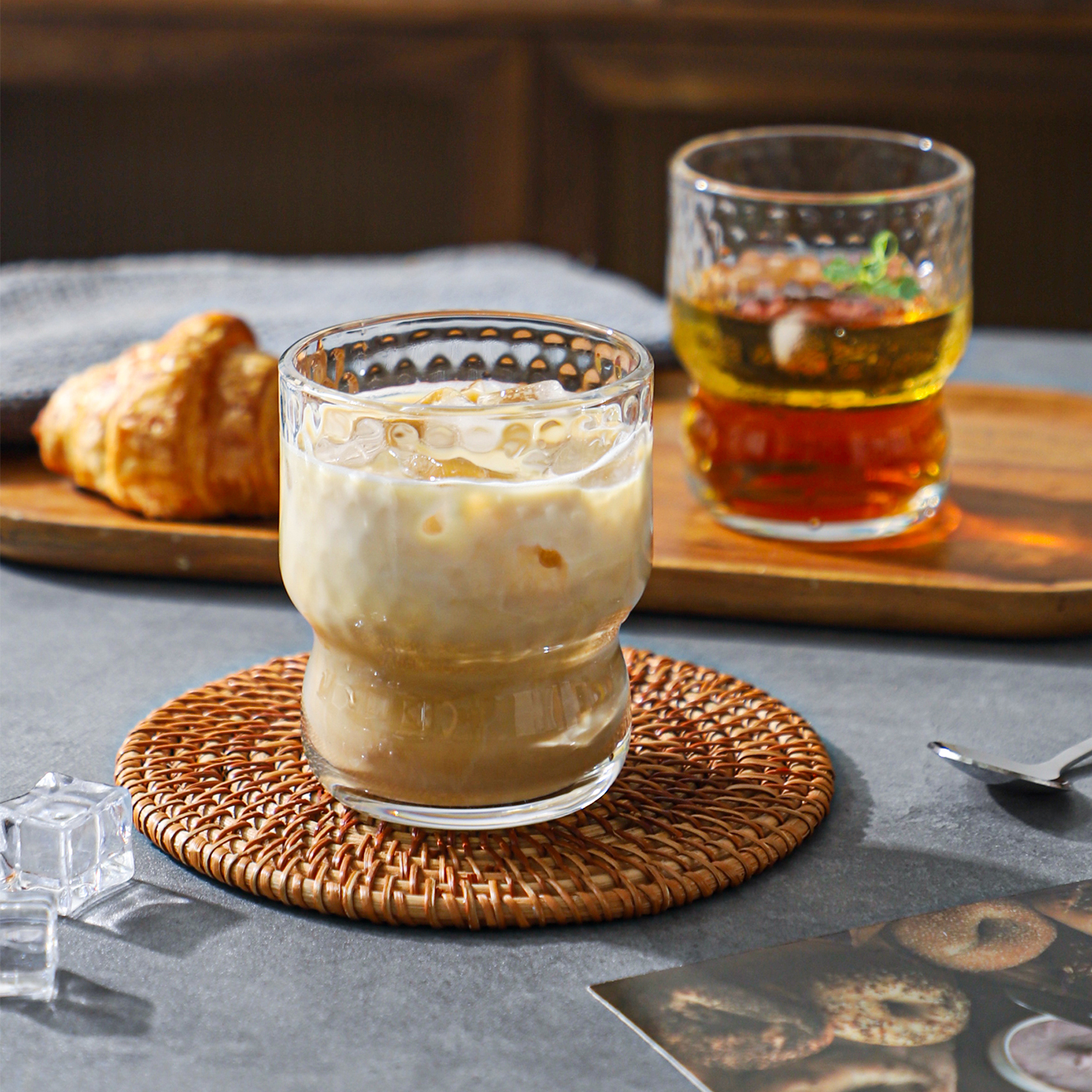 小众复古矮脚收腰玻璃杯ins风美式咖啡杯特调饮品杯冷饮杯果汁杯