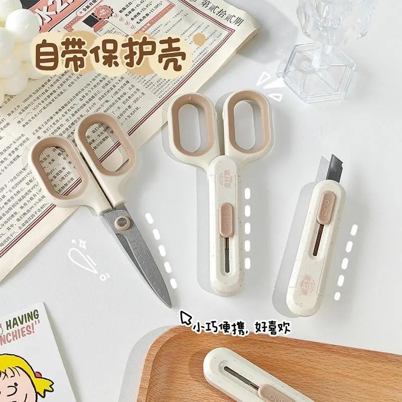 简约二合一剪刀美工刀多功能剪刀办公家用剪子特氟龙裁纸刀手工剪