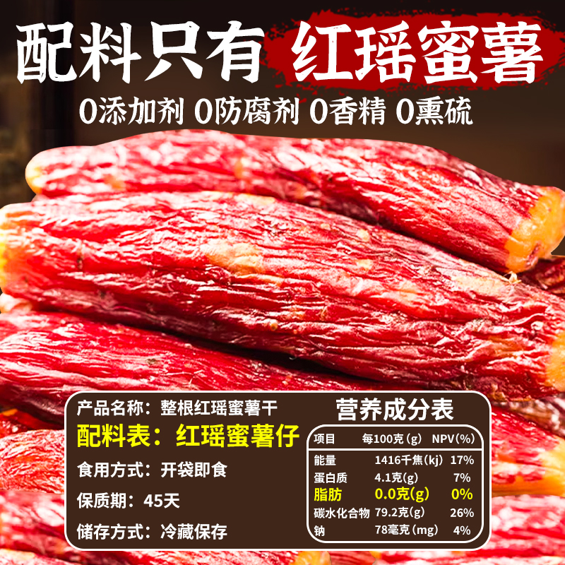红瑶蜜薯红薯干地瓜无添加糖倒蒸烤番0脂代餐休闲健康零食小吃