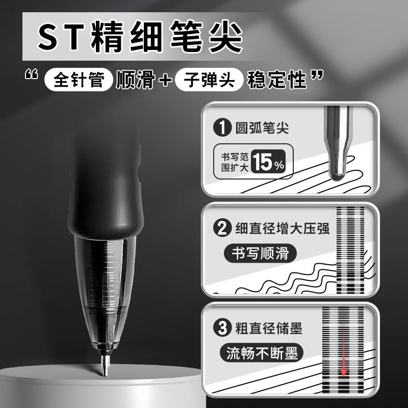 ST刷题笔高颜值按动中性笔圆珠笔黑色水笔小学生专用考试0.5速干碳素笔水性黑笔按压式做笔记签字笔非按斤卖