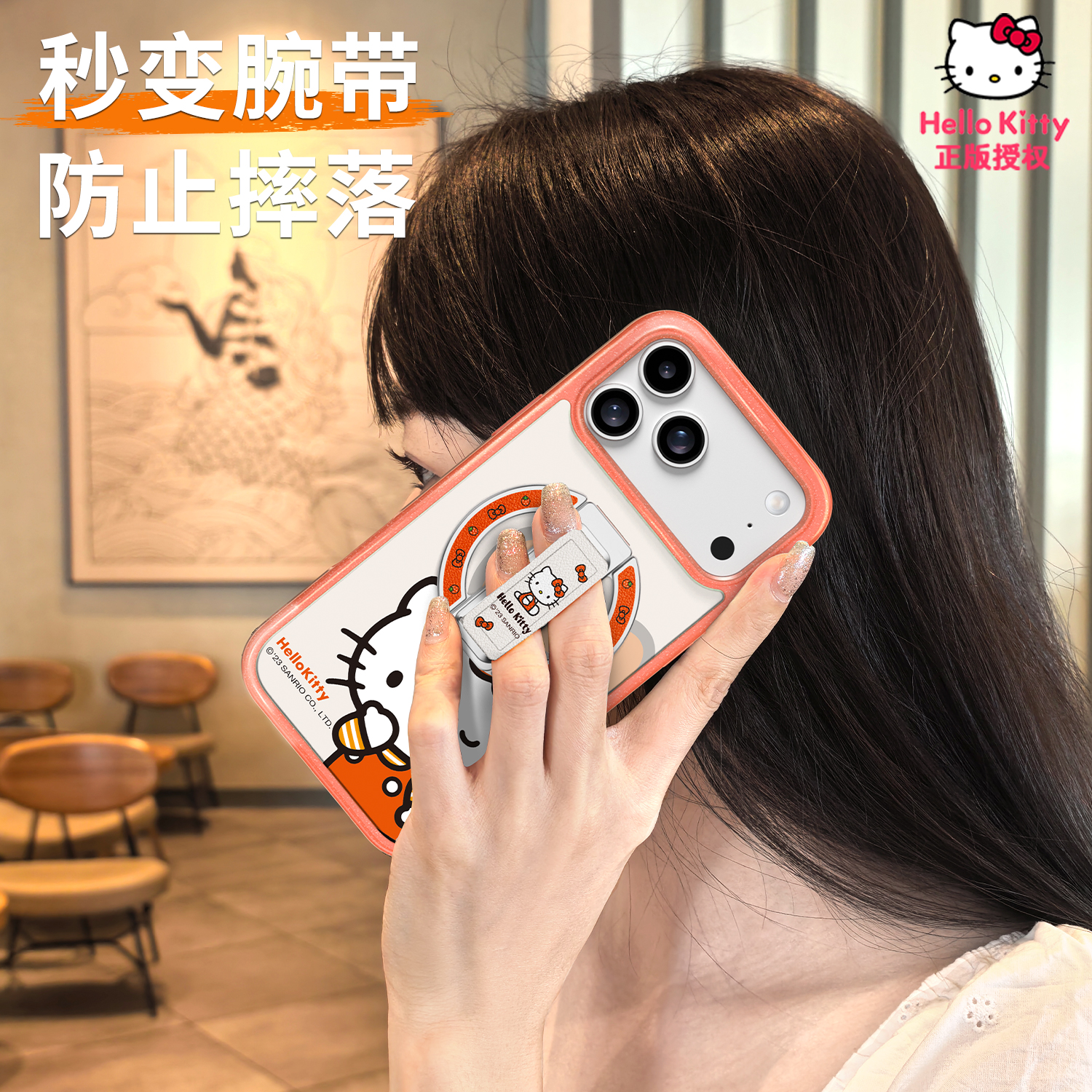 HelloKitty正版适用iphone17手机壳苹果17promax腕带Magsafe磁吸ip16全包防摔闪粉特别15pm凯蒂猫支架P分离式