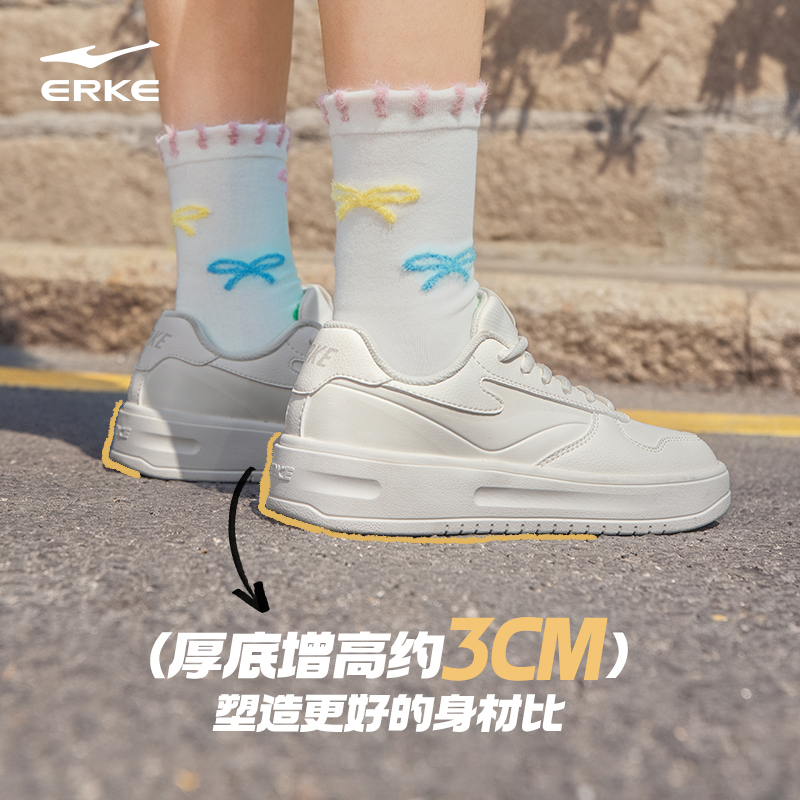 鸿星尔克女鞋板鞋厚底增高小白鞋秋冬新款皮面休闲鞋百搭运动鞋子