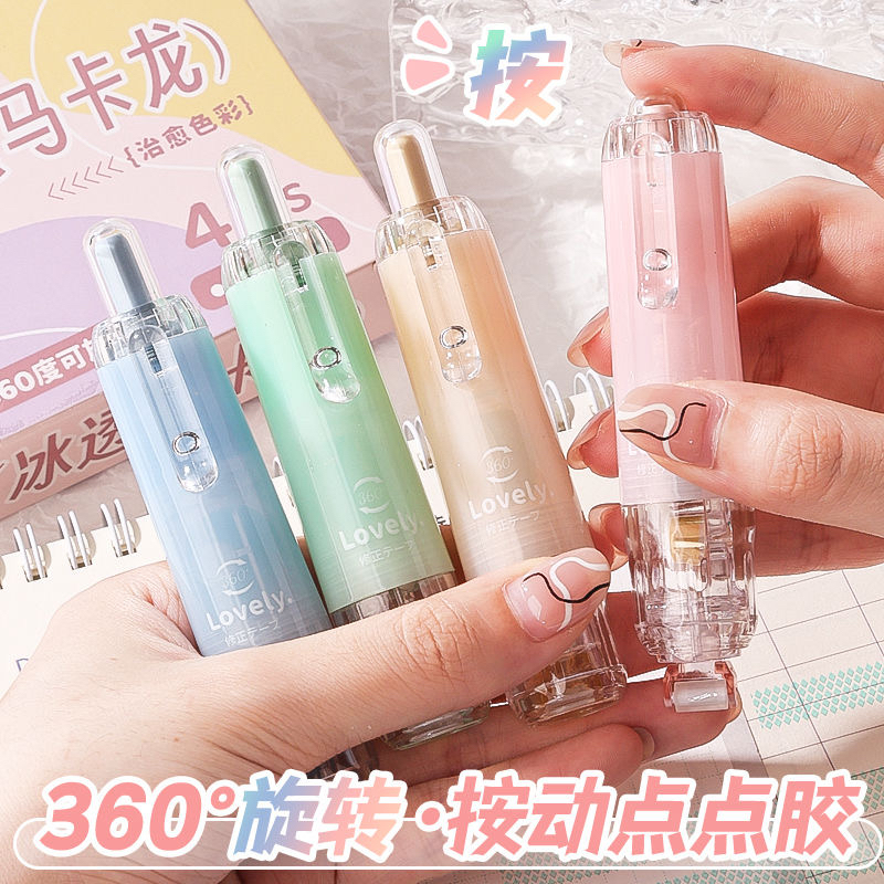 冰透色按动点点胶高颜值双面胶手帐胶带替芯错题粘贴点胶笔渐变色