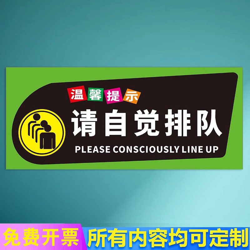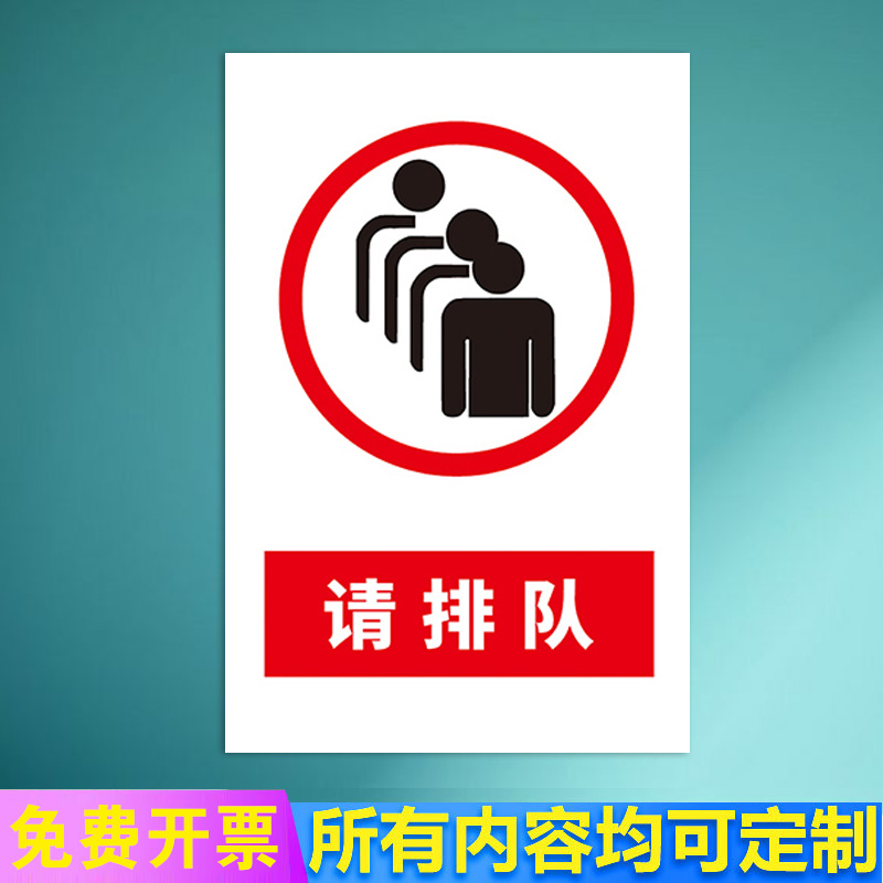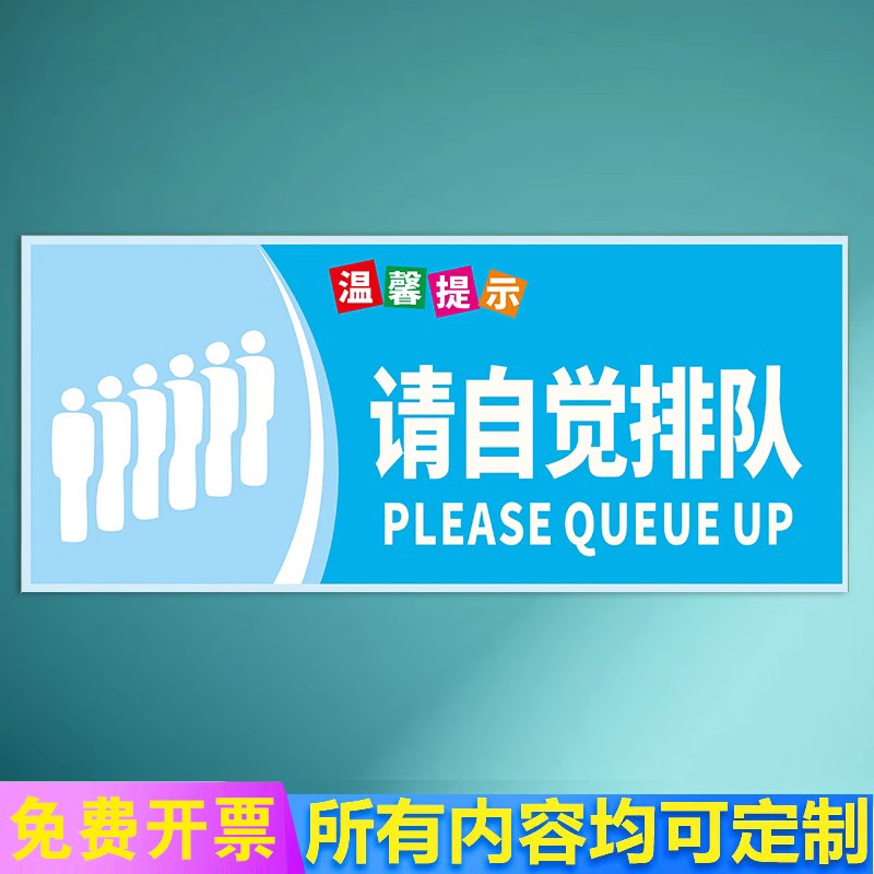 请排队提示牌 请自觉依次有序主动排队等候文明礼让不要推挤关心别人爱自己温馨提示警示标志牌贴牌子定制