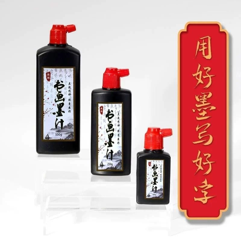 墨汁书法专用文房四宝书画墨液250g1000g2500g大瓶大桶油烟墨毛笔字500g学生国画练习毛笔墨水不臭花香超浓
