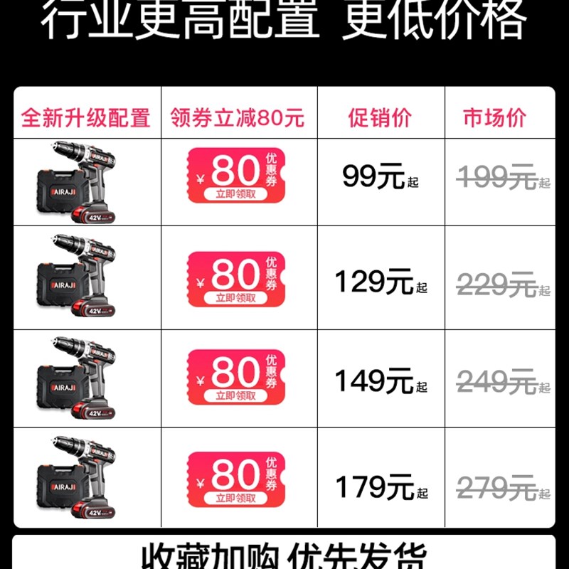 电钻冲击钻转家用小电钻锂电工具多功能电锤钻充电式电动螺丝起子