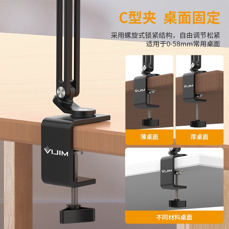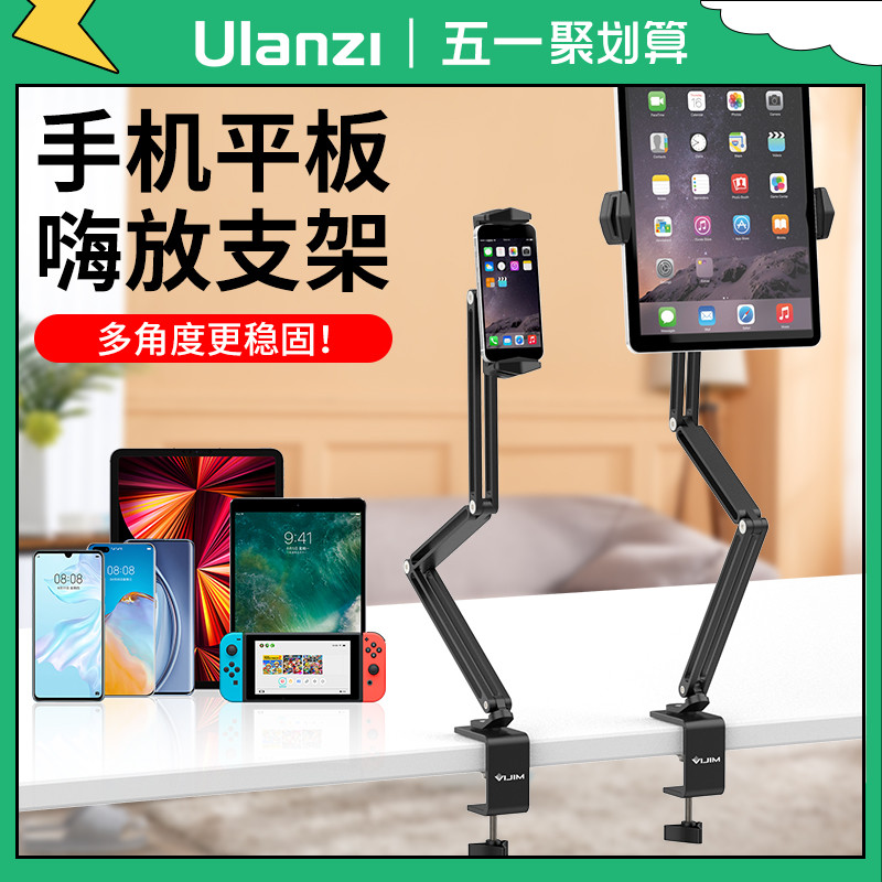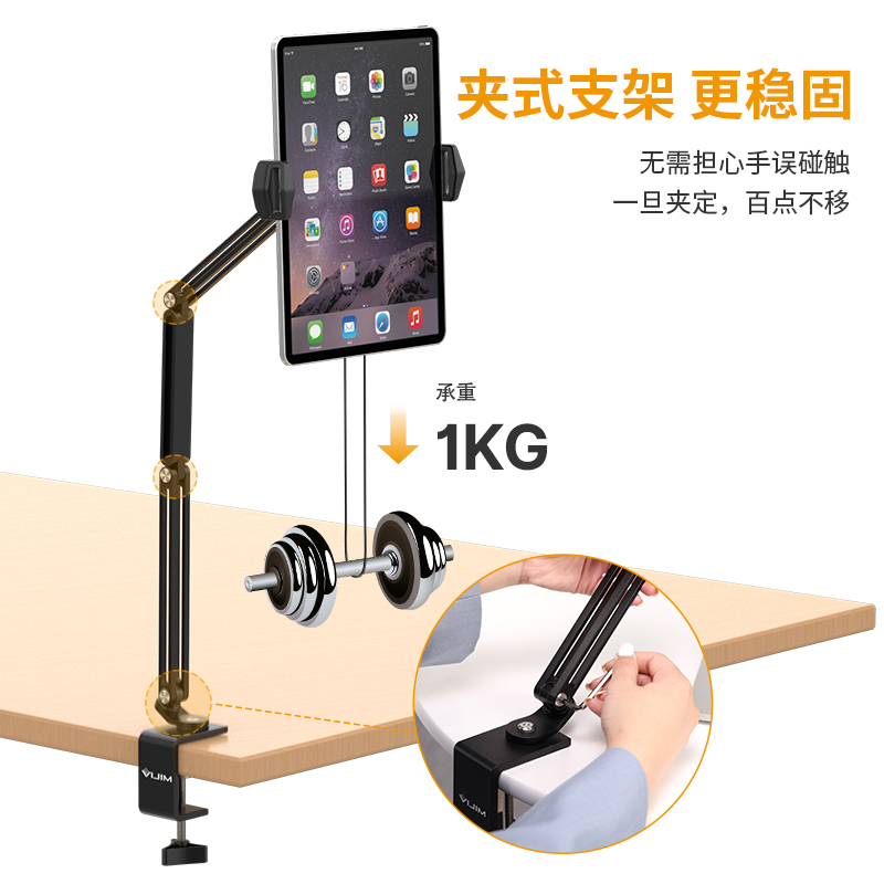 通用手机桌面支架ipad平板电脑折叠长降金属直播支架 网课教学淘宝追剧悬臂支撑桌面夹座HP001
