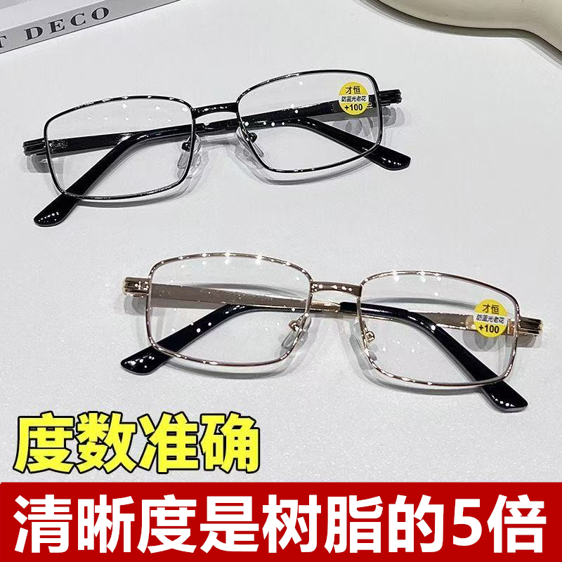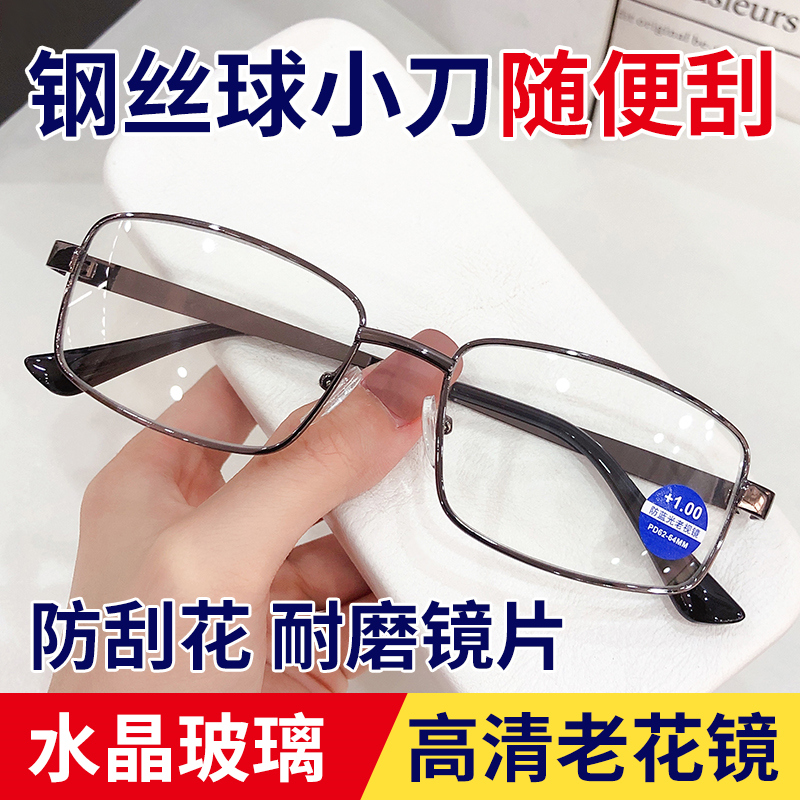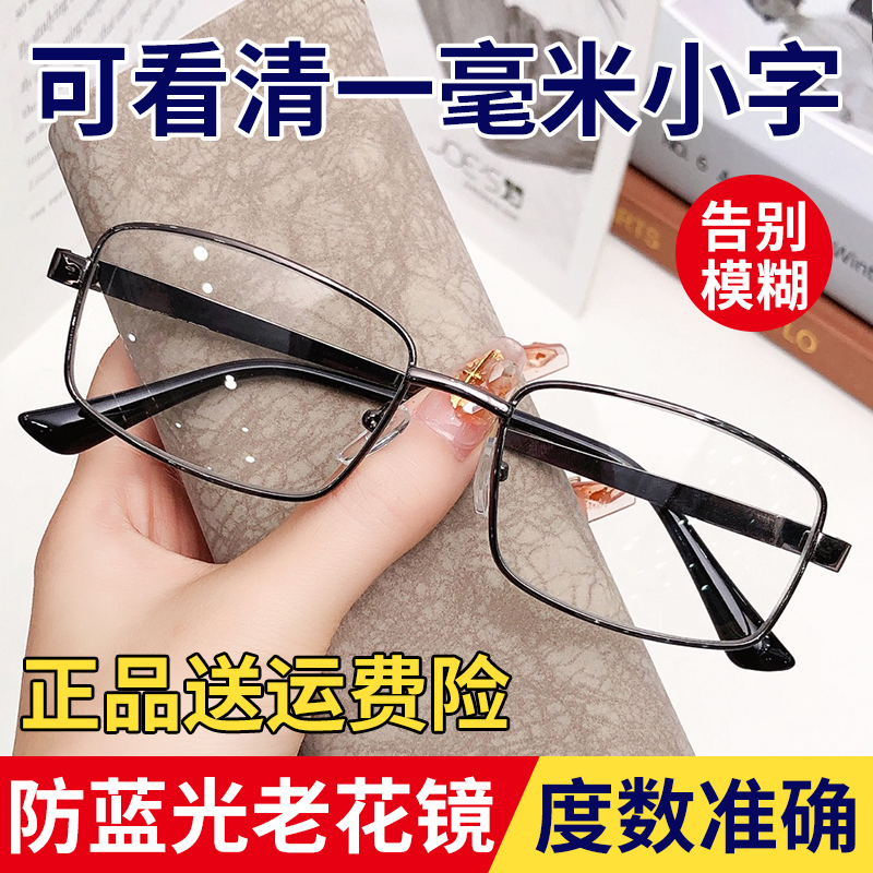 高清护目老花镜老花眼镜男女防蓝光水晶玻璃中老年人真水晶100度