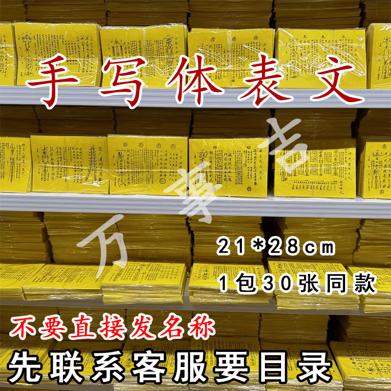 一包30张手写表文疏文大全黄纸黑字表文素面疏文文书联系客服备注