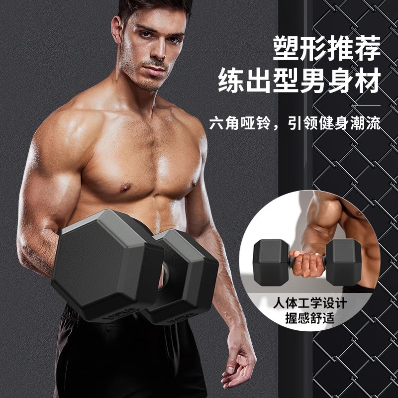 哑铃男士健身家用健身包胶10kg一对学生宿舍女生力量训练六角哑铃