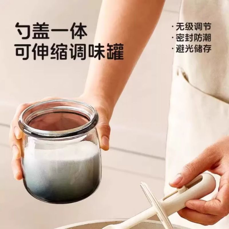 调料罐勺盖一体调味料收纳盒厨房家用分装瓶玻璃密封盐味精罐套装